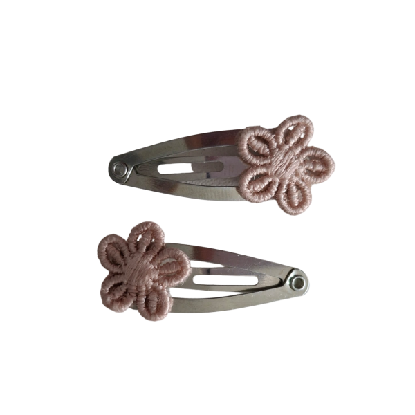 Setje van twee kleine haarknipjes (3cm) met bloemen van kant.