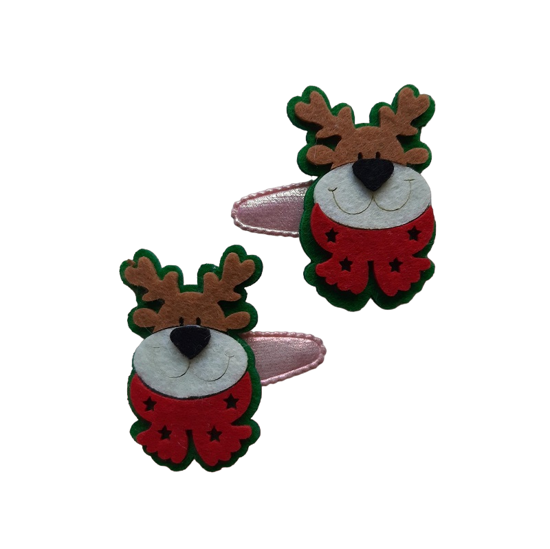 Setje van twee haarknipjes met applicaties in kerst thema.