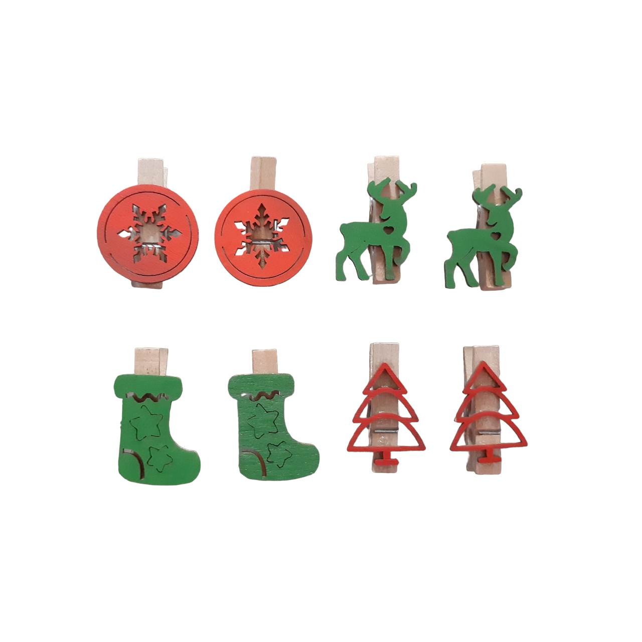Houten kerstknijpertjes Setje Groen/Rood (8 stuks)